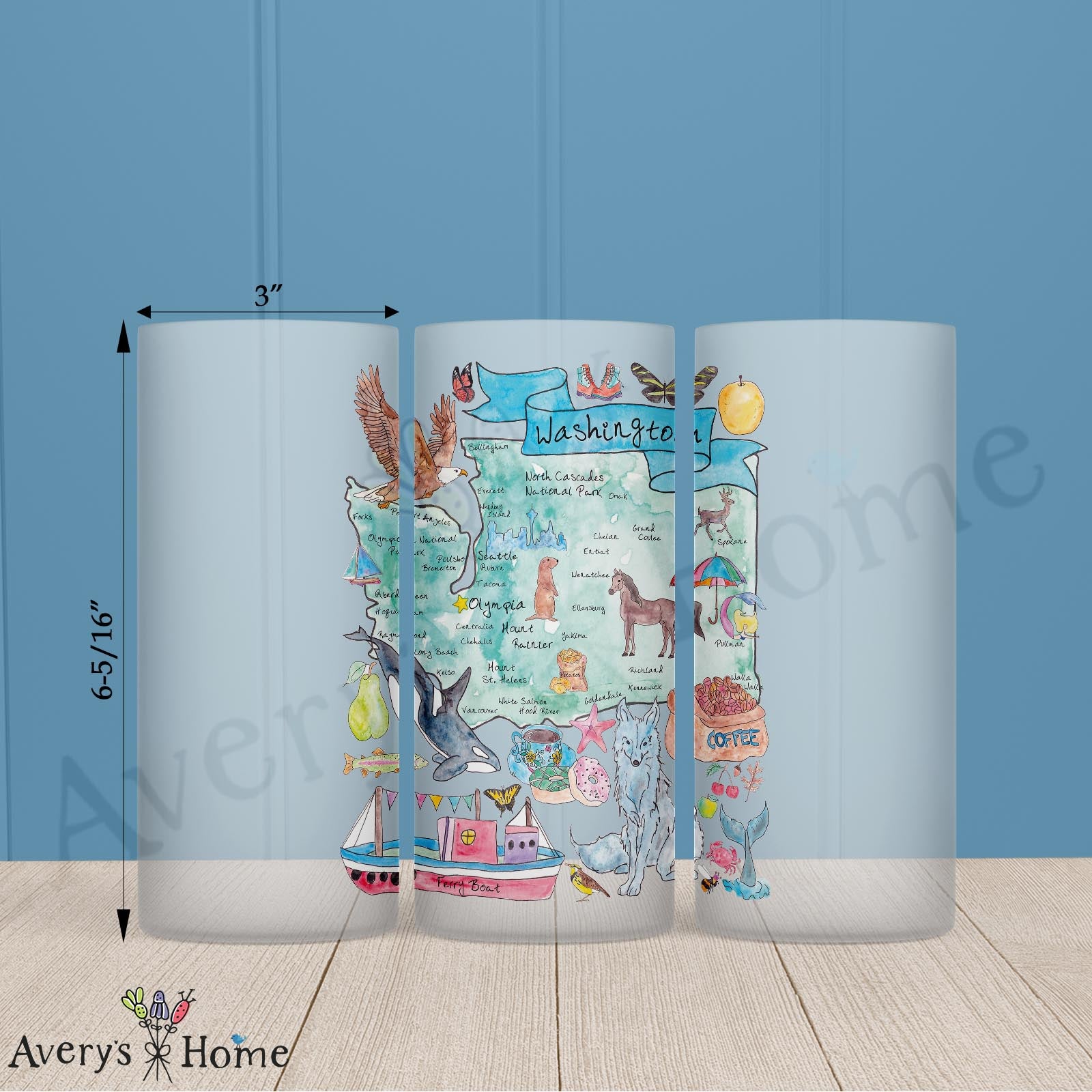 Washington Map 16oz Frosted Glass – Coffee, Cascades & Coast